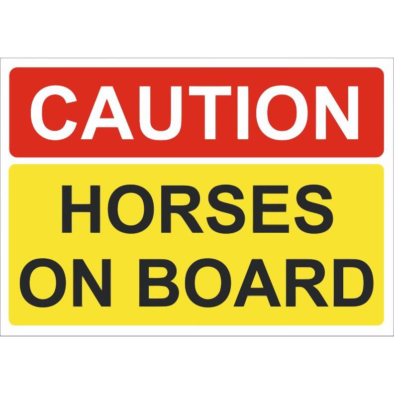 CAUTION HORSES ON BOARD DECAL - HORSE SAFETY STICKERS/SIGNS - WEATHERPROOF