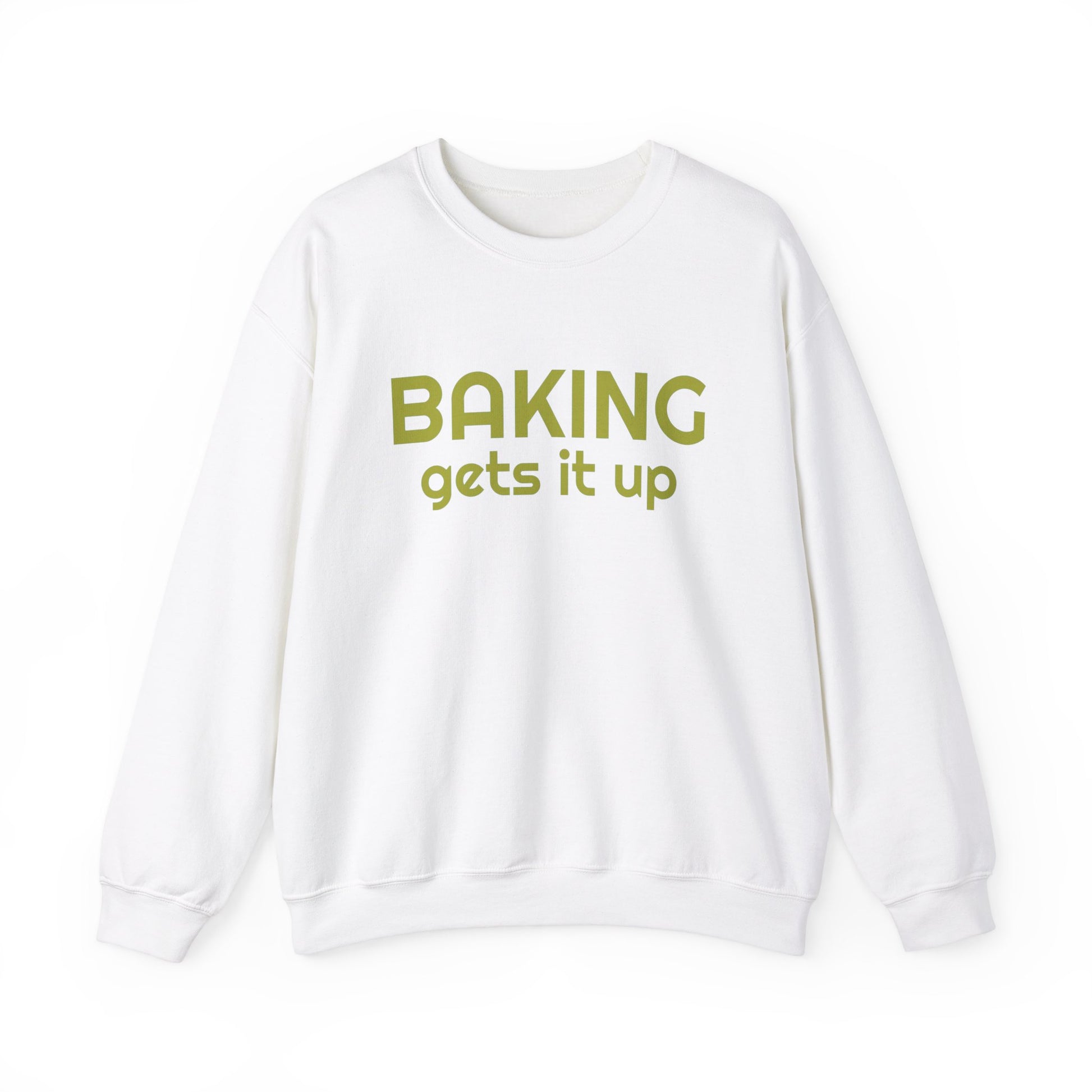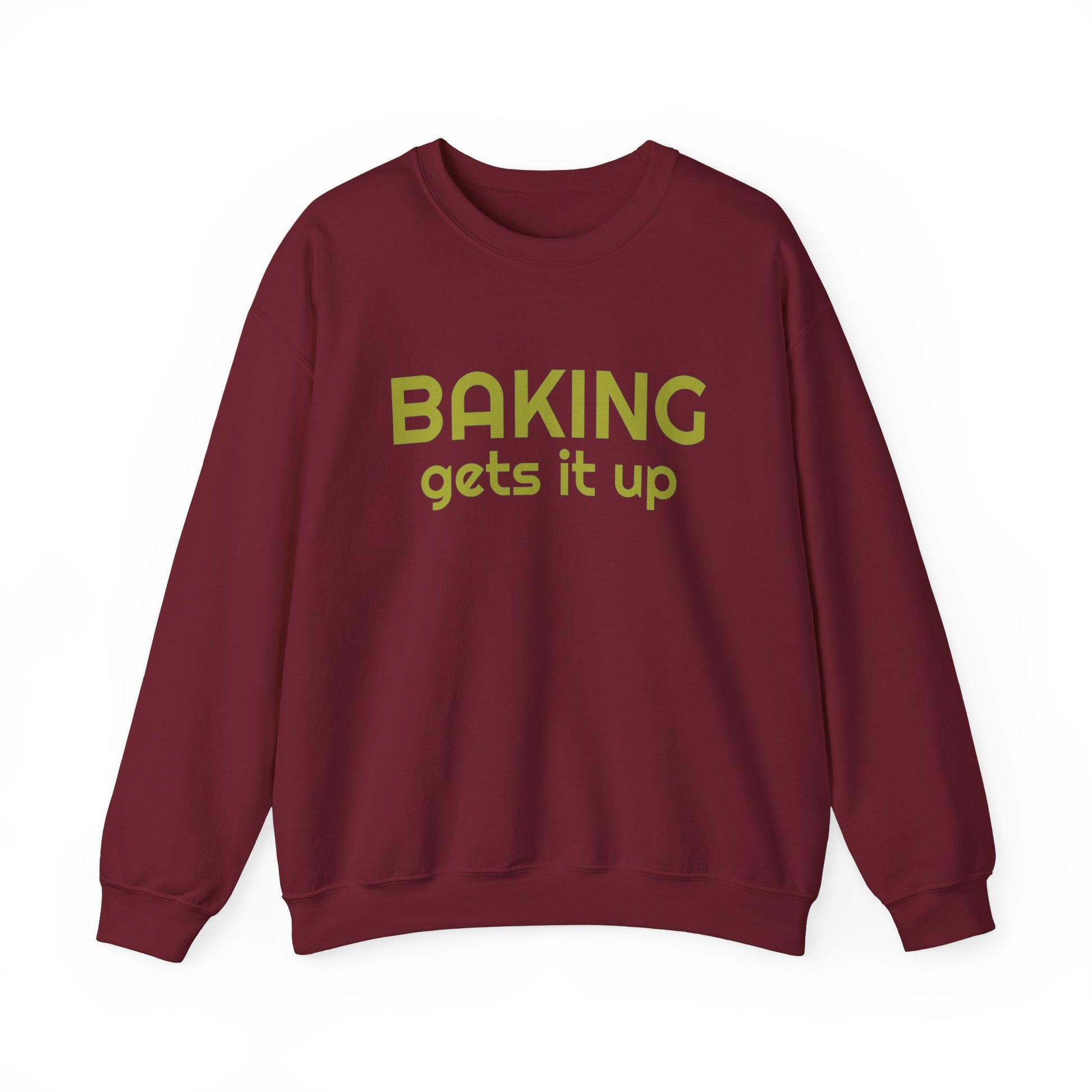 Crewneck Sweatshirt with Baking Gets It Up Graphic - Fun & Comfy Baking-Themed Clothing - Great Gift for Home Baker