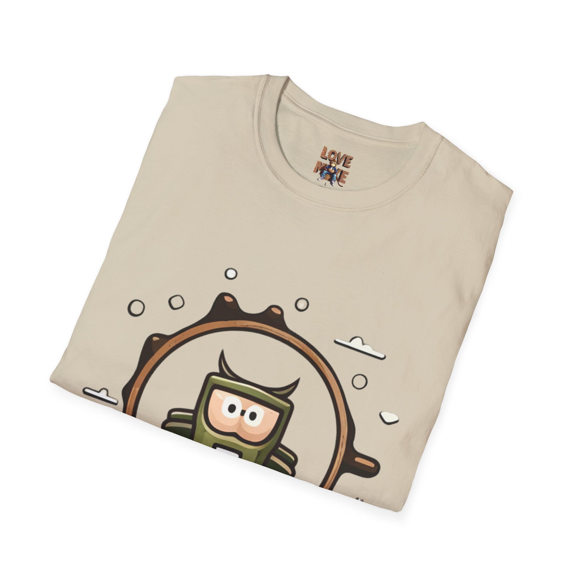 What sets this T-shirt apart is its unique design that speaks to the soul of adventure. The Helmet Explorer Guy motif is more than an image; it's a call to break free from the everyday and seek out the extraordinary. Whether you're scaling mountains, combing beaches, or roaming city streets, this tee is your trusty companion. It's not just a garment; it's a testament to your passion for exploration and a reminder of the stories you'll tell.